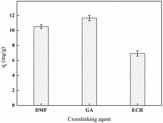 3.5.1. The Influence of Different Crosslinking Agents on Adsorption Efficiency