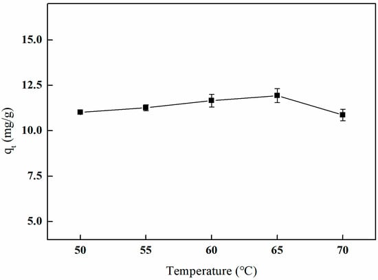 As depicted in Figure 12, the hydroxyl content initially increases with elevated reaction temperatures, subsequently decreases, and ultimately reaches a plateau. The peak hydroxyl content is observed at a reaction temperature of 65 °C. This behavior can be attributed to the fact that higher temperatures enhance the rate of the chemical reaction, thereby increasing hydroxyl content. However, excessively elevated temperatures may result in increased solvent evaporation and modifications to the fiber material, which can ultimately compromise the effectiveness of the amination process.