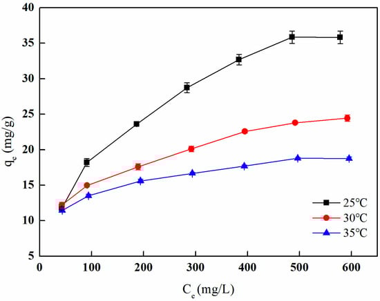 Aqueous boric acid solutions with concentrations of 50, 100, 200, 300, 400, 500, and 600 mg/L were prepared to simulate water samples. The pH of the solutions was adjusted to the optimal conditions, followed by the addition of 10 mL of the boric acid solution. Subsequently, 0.01 g of the I-(PP-g-GMA-NMDG) fiber material was placed in a stoppered glass sample bottle. The samples were agitated at a speed of 200 r/min in a constant-temperature water bath at 25 °C, 30 °C, or 35 °C for 2 h. The concentrations of boron in the aqueous solutions were quantified before and after the adsorption process by filtering the solutions.