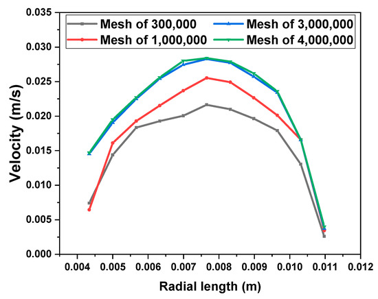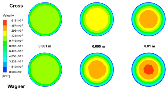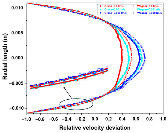 3.4. Differences in Velocity Field Simulated by Two Models in the Empty Tube
