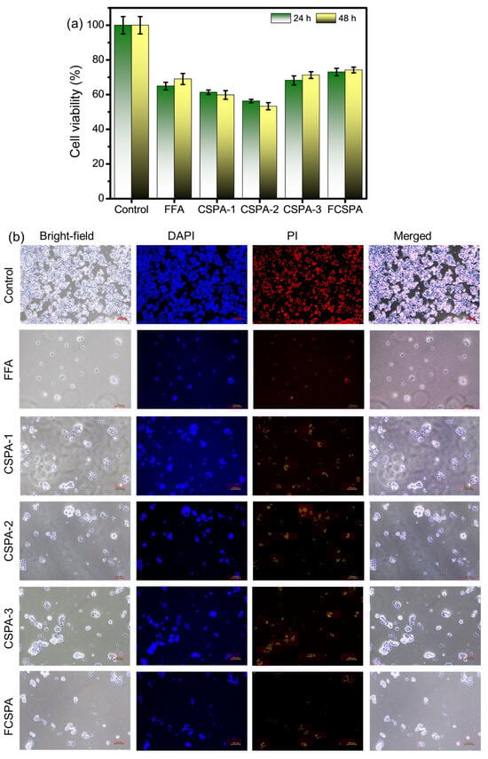 | FCSPA | 0.9 g in 30 mL | 7 g in 70 mL | 70:30 (CSPA-3) | 25 mg in 5 mL |