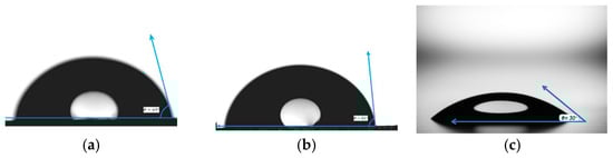The influence of the surface functional groups can be explained by measuring and calculating the contact angle of a sessile drop. For this purpose, water contact angle measurements of pure samples of PMMA, PS, and glass were carried out on Contact Angle Testing Equipment HD-U805 (Guangdong Haida Equipment Co., Ltd, Dongguan, China). Contact angle was measured at five different sample positions using a digital microscope with 1000× magnification by the static drop method at room temperature. The drop volume was 15 microliters.
