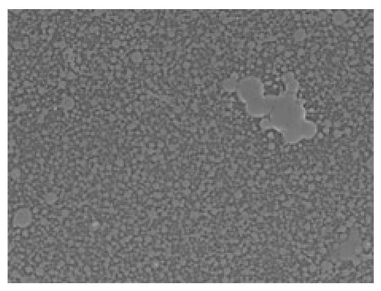 To obtain a general picture of the microstructure of the obtained films, the samples were examined under a Hitachi TM3030 Tabletop Scanning Electron Microscope. Slides were examined before and after the application of the interpolymer complexes. These microscopy results allowed us to examine the microstructure of the IPC films with a magnification of 500 times. The results of the microstructure observation are shown in Figure 5, Figure 6 and Figure 7.