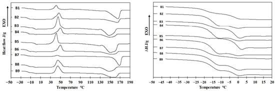 The thermal properties of all blends were determined using a differential scanning calorimeter (DSC 1, Mettler-Toledo Inc., Greifensee, Switzerland). Key thermal characteristics, including the glass transition temperature (Tg), crystallization temperature (Tc), and melting temperature (Tm), were evaluated from measurements conducted on blend pellets.