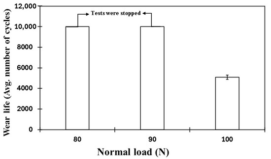 - At a normal load of 70 N and a sliding speed of 0.3 m/s, the pristine PEEK coating exhibited a wear life of approximately 7500 cycles before failure.