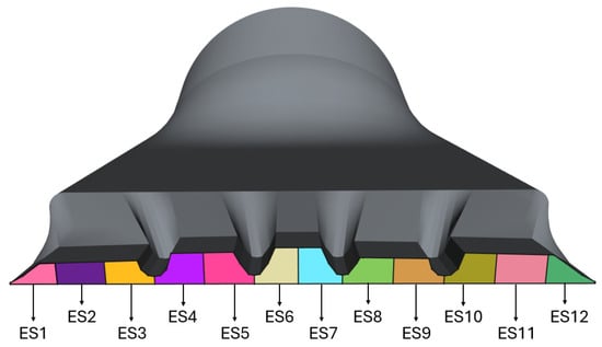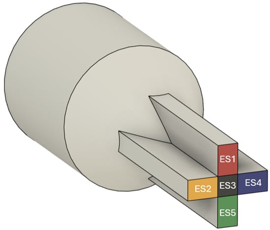 For optimization purposes, to monitor the flow distribution, the outlet cross-section of the flow channel must be divided into Elemental Sections (ESs), as illustrated in Figure 2 for an illustrative cross-shaped profile.