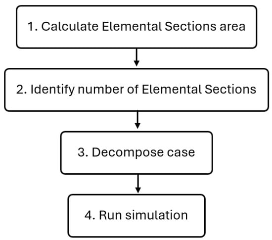 The first step in the preprocessing phase involves calculating the area of the various ESs at the flow channel outlet using the patchIntegrate [] OpenFOAM utility. Since meshing a CAD model can slightly alter its original size due to inherent constraints, this step is crucial for accurately determining the area of each ES for the simulation mesh. Correctly defining these areas will ensure accurate flow rate calculations for each elemental section and their corresponding average velocities, thereby assessing and ensuring the reliability of the convergence criteria.