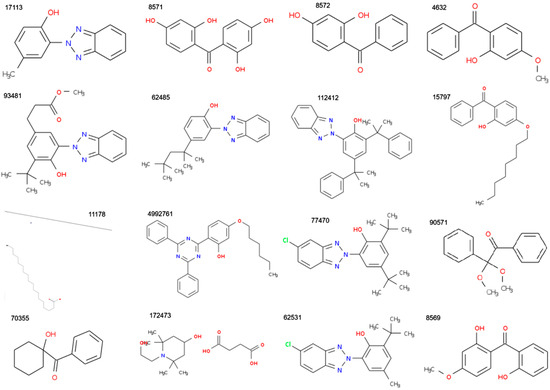 The CIDs assigned in PubChem of the study molecules are presented in Figure 1 and Figure 2, together with the compounds’ structures.