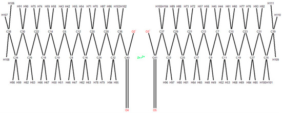 Another possible representation of the molecules, indicating all atoms and their total number obtained by the internal editor of R, is shown in Figure 3 for CID 11178. This CID was chosen because the representation retrieved from PubChem is unclear. The atoms are numbered in the following order from Mendeleev’s table: from the right to the left and from the highest to the smallest atomic number.