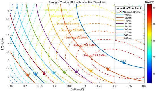 Strength contour plot with induction time limit.