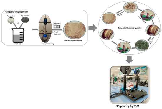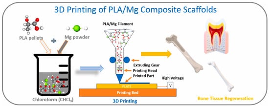 - Kalva, S.N.; Ali, F.; Velasquez, C.A.; Koç, M. 3D-Printable PLA/Mg Composite Filaments for Potential Bone Tissue Engineering Applications. Polymers 2023, 15, 2572. [Google Scholar] [CrossRef]