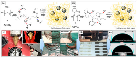 - Podstawczyk, D.; Skrzypczak, D.; Połomska, X.; Stargała, A.; Witek-Krowiak, A.; Guiseppi-Elie, A.; Galewski, Z. Preparation of antimicrobial 3D printing filament: In situ thermal formation of silver nanoparticles during the material extrusion. Polym. Compos. 2020, 41, 4692–4705. [Google Scholar] [CrossRef]