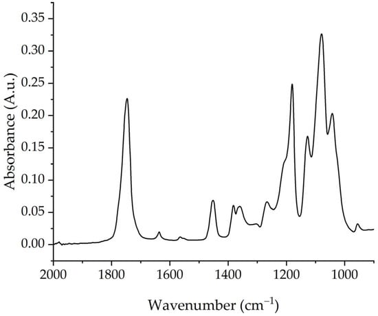 Unnormalized Fourier-transform infrared spectroscopy (FTIR) spectra for the unprocessed PLA.