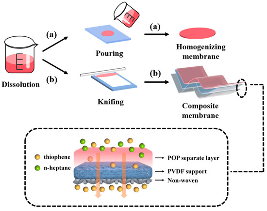 Schematic diagram of preparation process: (a) homogenizing membrane and (b) composite membrane.