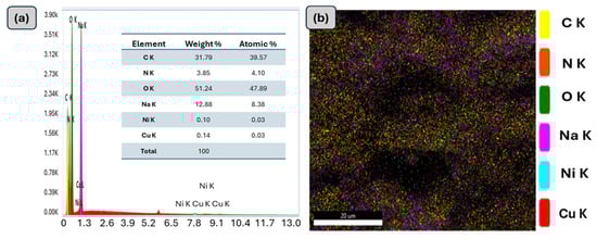 (a) EDS and (b) EDS mapping of GG−CuO−NiO hydrogel.