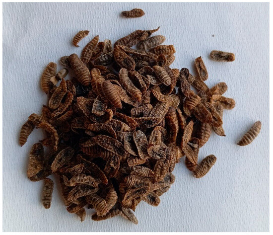 BSF larvae at the last larval age were dried (see Figure 1), washed 3 times in deionized water, further dried at 55 °C for 24 h and finely ground in a blender.