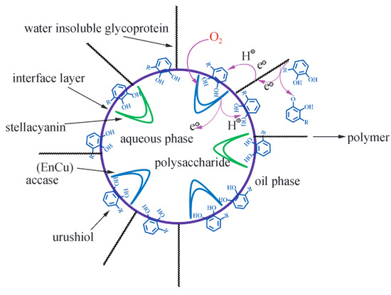 - Oshima, R.; Yamauchi, Y.; Watanabe, C.; Kumanotani, J. Enzymic oxidative coupling of urushiol in sap of the lac tree, Rhus vernicifera. J. Org. Chem. 1985, 50, 2613–2621. [Google Scholar] [CrossRef]