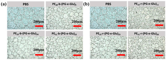 The microscope photos of different glycopolypeptoids (annealed at −8 °C for 30 min; PBS solution is experimental control).