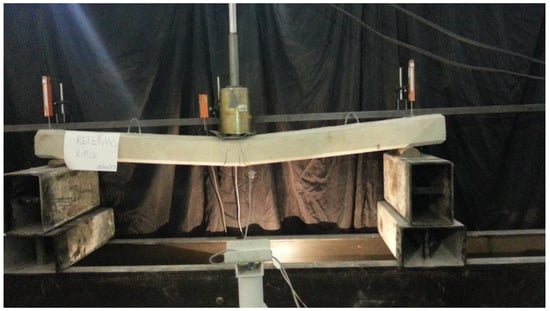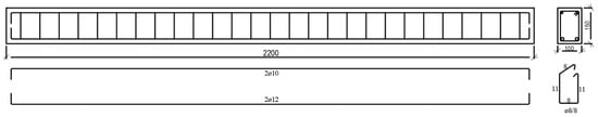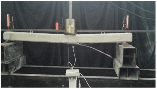 The total length of the beam was 2200 mm, and the loading span was 2000 mm. Using a hydraulic jack, the load was applied at the midspan, and strain gauges were attached to the midspan to monitor displacement. All samples were loaded until failure, and the results are given in Section 4.