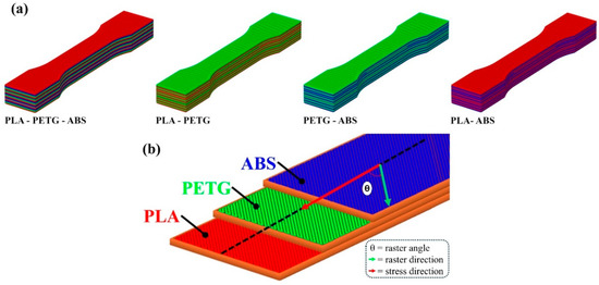 - Eyri, B.; Gul, O.; Yilmaz, S.; Karsli, N.G.; Yilmaz, T. Characterization of ABS/PETG Multi-Material Composites 3D Printed by Print-Pause-Print Method. Polym. Eng. Sci. 2025, 65, 2353–2369. [Google Scholar] [CrossRef]