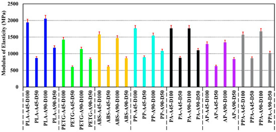 - Algarni, M.; Ghazali, S. Comparative Study of the Sensitivity of PLA, ABS, PEEK, and PETG’s Mechanical Properties to FDM Printing Process Parameters. Crystals 2021, 11, 995. [Google Scholar] [CrossRef]