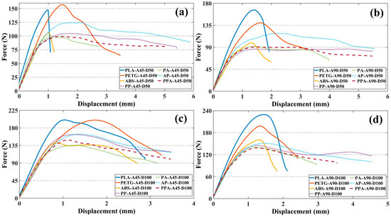 - Rodríguez-Reyna, S.; Mata, C.; Díaz-Aguilera, J.; Acevedo-Parra, H.; Tapia, F. Mechanical Properties Optimization for PLA, ABS and Nylon+ CF Manufactured by 3D FDM Printing. Mater. Today Commun. 2022, 33, 104774. [Google Scholar] [CrossRef]