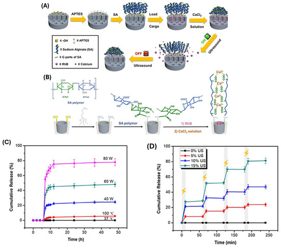 - Li, X.; Wang, Z.; Xia, H. Ultrasound Reversible Response Nanocarrier Based on Sodium Alginate Modified Mesoporous Silica Nanoparticles. Sec. Polym. Chem. 2019, 7, 1. [Google Scholar] [CrossRef]