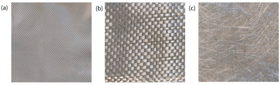 All the glass fabrics were sized with a silane coupling agent. In Figure 1, pictures of the three different typologies of fabric are shown.
