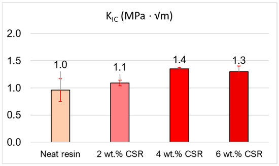 Fracture toughness of neat resin compared with toughened resin with different amounts of CSR particles.