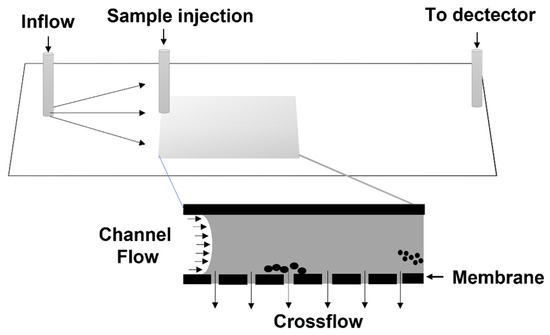 Figure 3. Principle of macromolecule separation using asymmetrical flow field-flow fractionation (AF4).