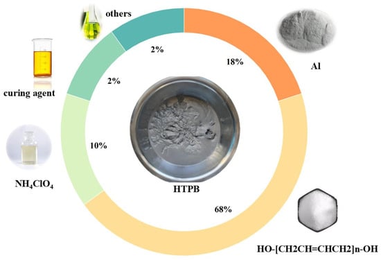This study focuses on a specific HTPB propellant slurry with an 86% solid content. Figure 2 displays the component fractions.
