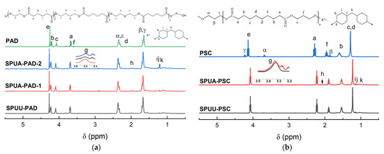 1H NMR spectrum of pristine (a) PAD, SPUPAD, (b) PSC, and SPUPSC.