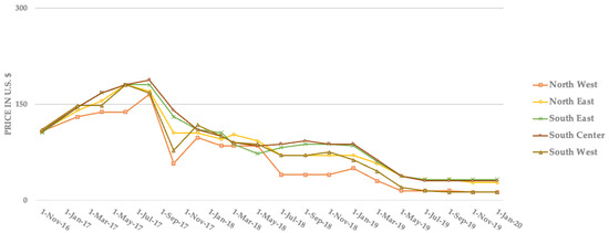 Figure 1 clearly shows the financial consequences of this contamination problem. After China implemented stricter quality standards in 2017, prices for old corrugated cardboard (OCC) crashed dramatically across all U.S. regions, falling from about USD 150 per ton to just USD 15–37 per ton by 2019, a 75–90% drop in value [