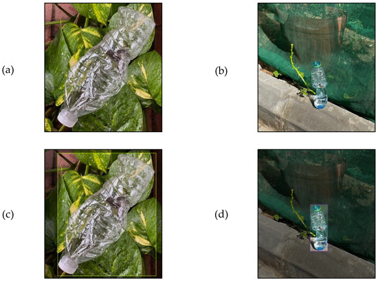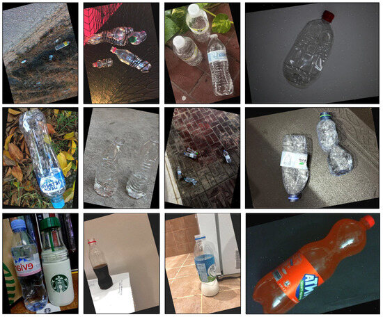 91]. Images chosen from the public datasets had no water marks, were non-synthetic, had transparent PET bottles, and the image size was equal to or larger than 640 × 640 pixels.