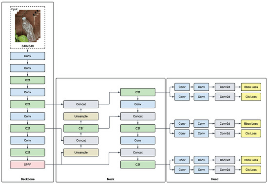 In this study, we trained YOLOv8, which is a well-established real-time object detection model. It is a single-stage model with a convolutional neural network (CNN) backbone, as shown in
