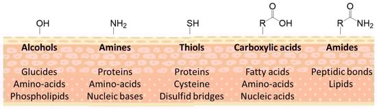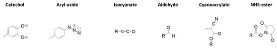 Some products, such as fibrin-based adhesives, can exhibit properties characteristic of all three categories. Figure 3 illustrates the main functional groups found on tissue surfaces that participate in adhesive interactions [11,12]. As interest in biomaterials continues to grow, bioadhesion has become a significant area of research [13,14,15,16,17,18,19,20].