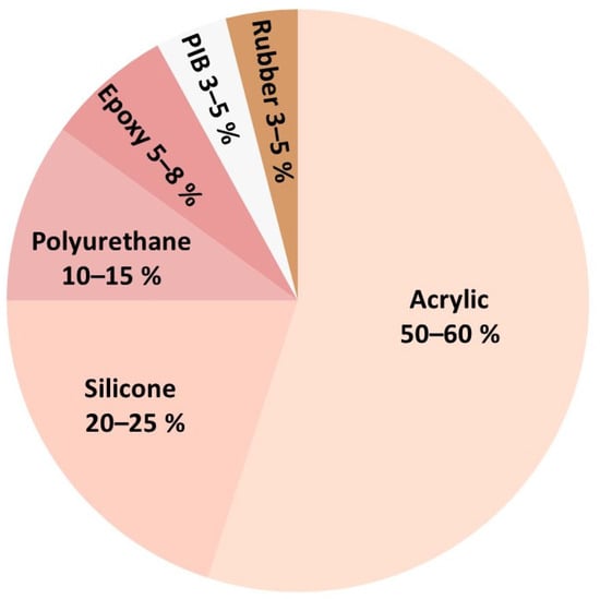 - Barrows, T.; Lewis, T.; Truong, M. Adhesive Sealant Composition. US5583114A, 10 December 1996. Available online: https://patents.google.com/patent/US5583114A/en (accessed on 6 August 2024).