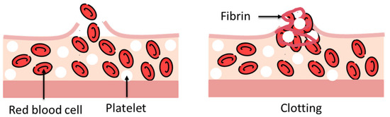 Physiological adhesion refers to interactions that occur naturally within the body and are often exploited by biologically derived adhesives. These mechanisms are typically based on biological recognition processes such as antigen–antibody interactions, enzyme–substrate specificity, and cellular signaling cascades [39]. A well-known example is fibrin glue, which mimics the body’s natural blood-clotting mechanism. Fibrin glue operates through the thrombin-mediated polymerization of fibrinogen, forming an insoluble fibrin network that stabilizes the wound and promotes hemostasis. This cascade involves a sequence of biological steps, including vasoconstriction, platelet aggregation, fibrin formation, and fibrinolysis during tissue regeneration. Such physiologically inspired adhesives have the advantage of excellent biocompatibility, though they may lack mechanical robustness [40].