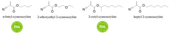 - FDA. US Food and Drug Administration—Premarket Approval (PMA) for Dermabond®. Available online: https://www.accessdata.fda.gov/scripts/cdrh/cfdocs/cfpma/pma.cfm?id=p960052 (accessed on 6 August 2024).