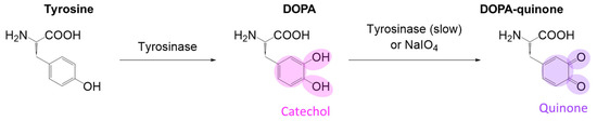 - Hauser, D.; Septiadi, D.; Turner, J.; Petri-Fink, A.; Rothen-Rutishauser, B. From Bioinspired Glue to Medicine: Polydopamine as a Biomedical Material. Materials 2020, 13, 1730. [Google Scholar] [CrossRef] [PubMed]