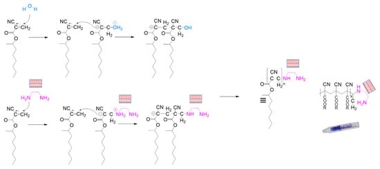 - Leonard, F.; Kulkarni, R.K.; Brandes, G.; Nelson, J.; Cameron, J.J. Synthesis and Degradation of Poly (Alkyl A-cyanoacrylates). J. Appl. Polym. Sci. 1966, 10, 259–272. [Google Scholar] [CrossRef]