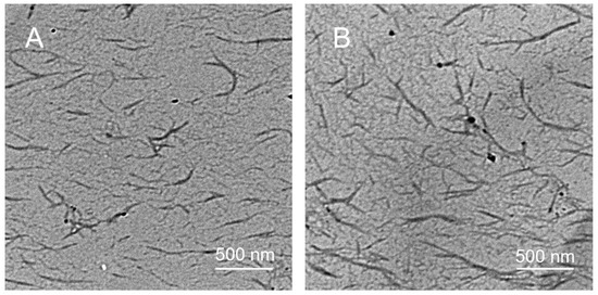TEM images of (A) c-PDTA-DI-CNC10 and (B) c-PDTA-DI-CNC20.