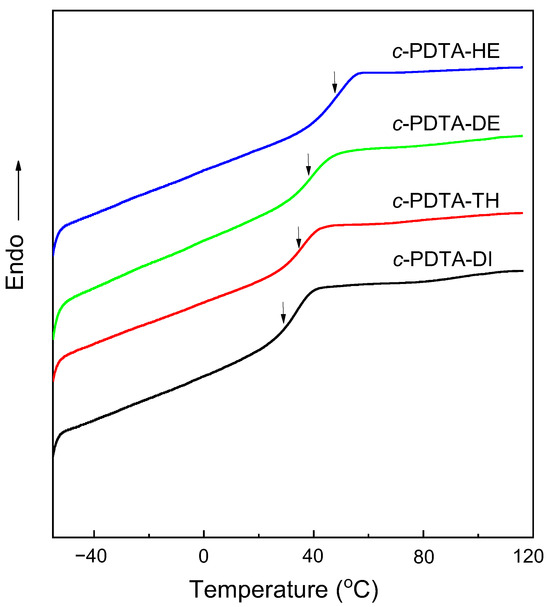 DSC curves of c-PDTA-HE, c-PDTA-DE, c-PDTA-TH and c-PDTA-DI.