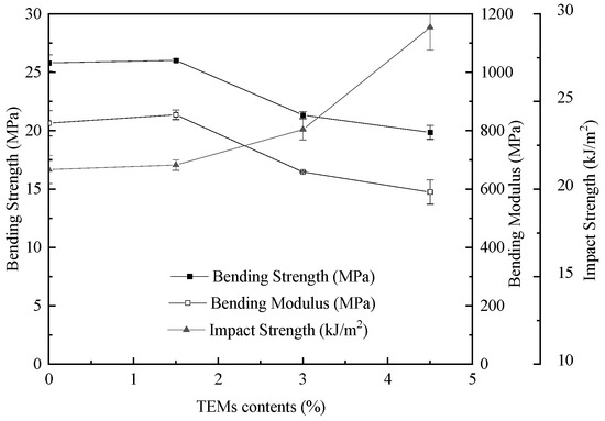 Bending properties of foamed samples with different TEM contents.