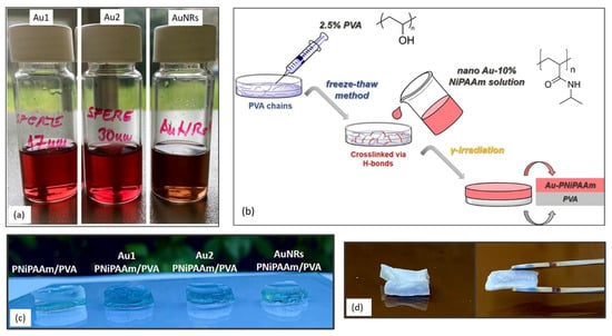 2.3. Synthesis of Bi-Layered Nano Au-PNiPAAm/PVA Hydrogel Nanocomposites
