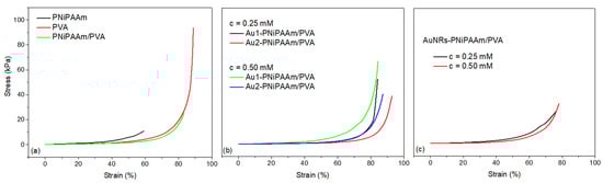 | AuNSs-PNiPAAm/PVA | 0.25 | 17 | 52.7 ± 2.8 | 84.3 ± 3.6 | 3.21 ± 0.19 |