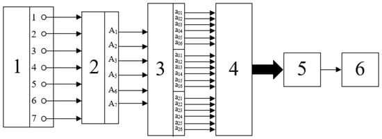 It should also be emphasized that the choice of the number of optoelectronic pairs was made, first, based on the criterion formulated in the Section 2, i.e., the number 7 corresponds to the formula for ; second, it aligns with the arguments presented in [], according to which the selection of a specific Galois field should be guided by the specifics of the particular problem.