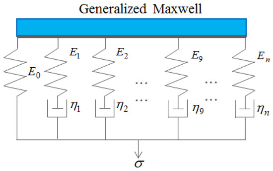 The mathematical model employed in this study is the generalized Maxwell model for viscoelastic material, which provides a more accurate representation of real material behavior. The mathematical formulation of this model is expressed using the Prony series, which can be represented as follows: