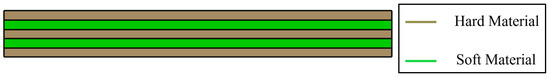 Schematic diagram of a thickness section compounded by hard material (brown) and soft material (green).
