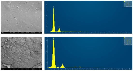 3.4. SEM and Energy-Dispersive X-Ray Spectroscopy (EDS)
